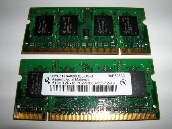- Qimonda HYS64T64020HDL-3S-B (512MB 2Rx16 PC2-5300S-555-12-A0)(2枚組・合計:1GB)