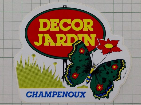 - 古い 外国のステッカー:decor jardin 蝶 ビンテージ バタフライ ギターやケースなどに +A1