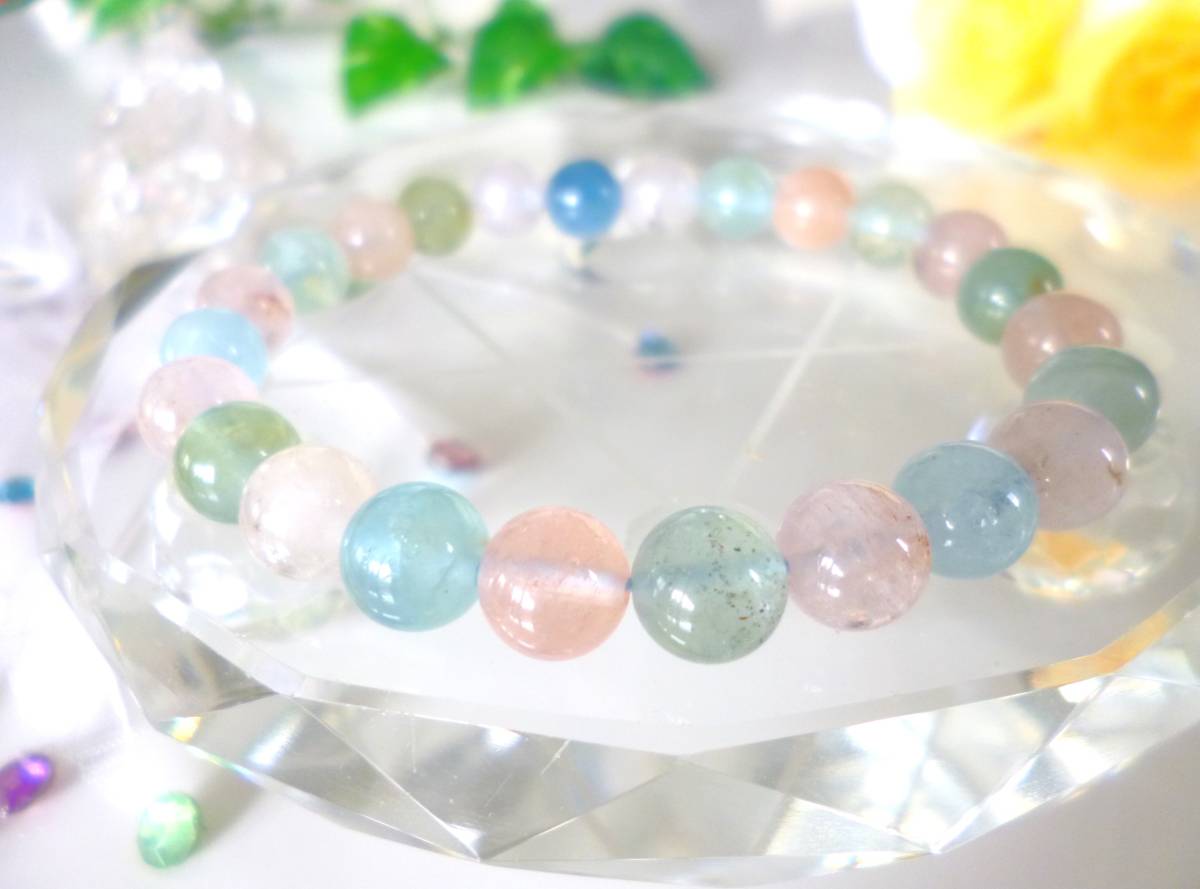 > ☆愛のミックスベリル☆宝石質☆綺麗な透明感☆アクアマリン☆モルガナイト☆エメラルド☆高品質AAA☆クリアータイプ☆ブルー☆8mm☆