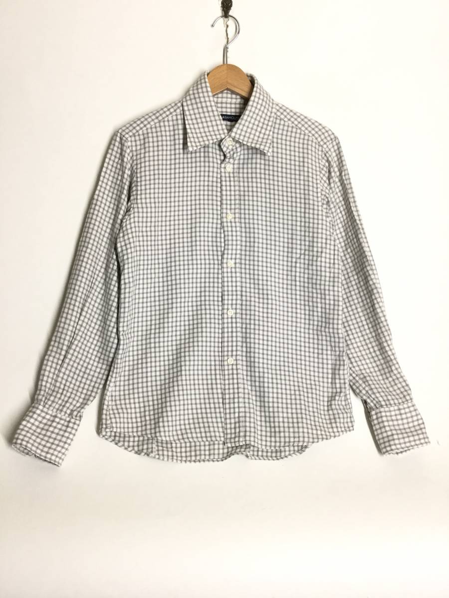 - ★ ABAHOUSE 長袖シャツ チェック 白 グレー F レギュラーカラー 日本製