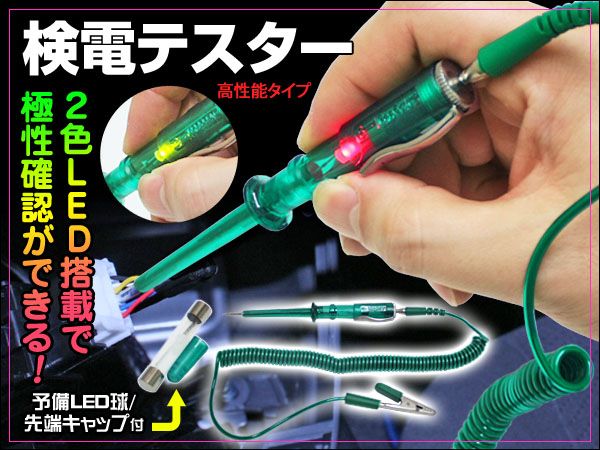 - LED検電テスター 極性確認用LED 赤/緑2色搭載 通電確認