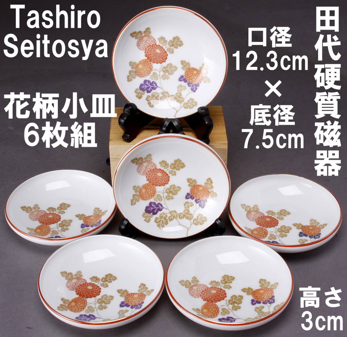 > 田代硬質磁器 Tashiro Seitosha 小皿6客セット 花柄 オレンジ 口径12.3cm 高さ3㎝ 中古 KA-6714