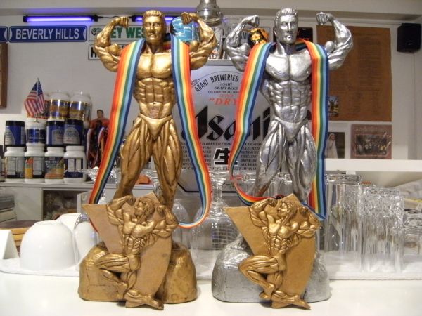 - 非売品★アメリカ選手権大会 金銀 ボデイビル トロフィー & メダル 2個セット★ゴールドジム、プロレス★筋肉 ★金色 銀色 双子 金閣 銀閣