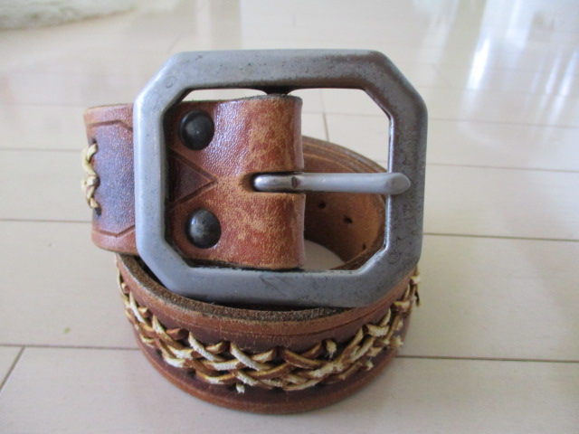 - オールドスタッド OLD STUD ハンドメイド ヒッピー サーファー レザー ベルト 革ベルト バックル ビンテージタイプ 編み込み