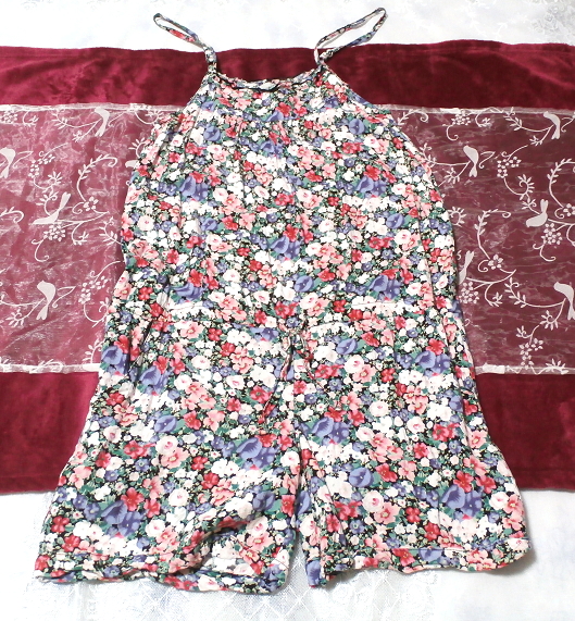 > 青赤白花柄キャミソールネグリジェキュロットワンピース Blue red white floral pattern negligee camisole dress
