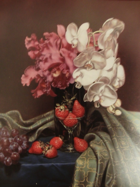 - 三嶋哲也、【蘭と苺】、希少な画集画、新品高級額 額装付、状態良好、送料無料、絵画 風景画