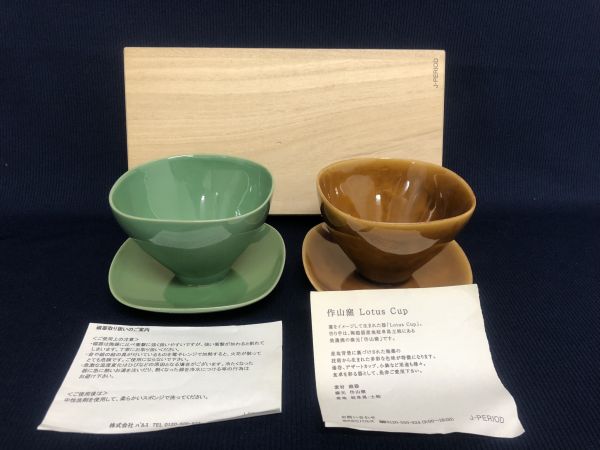 - 未使用品★美濃焼 作山窯 デザート皿 Lotus Cup 2客 セット 共箱あり管理1803 Q-14