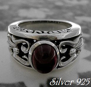 - シルバー925銀のレッドジルコニア付 サイドトライバル リング/15号.21号より/S&A silver