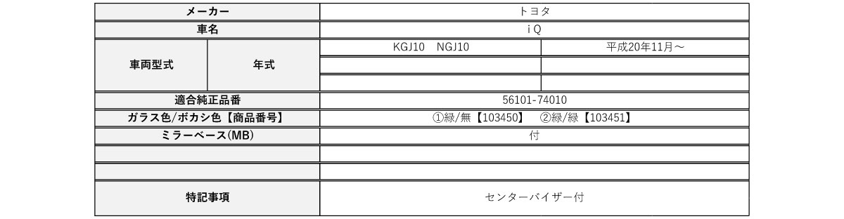 - 4◇新品◇UV&IRカット断熱フロントガラス◇トヨタ iQ KGJ10 NGJ10 ボカシ無 ボカシ緑 103450 103451