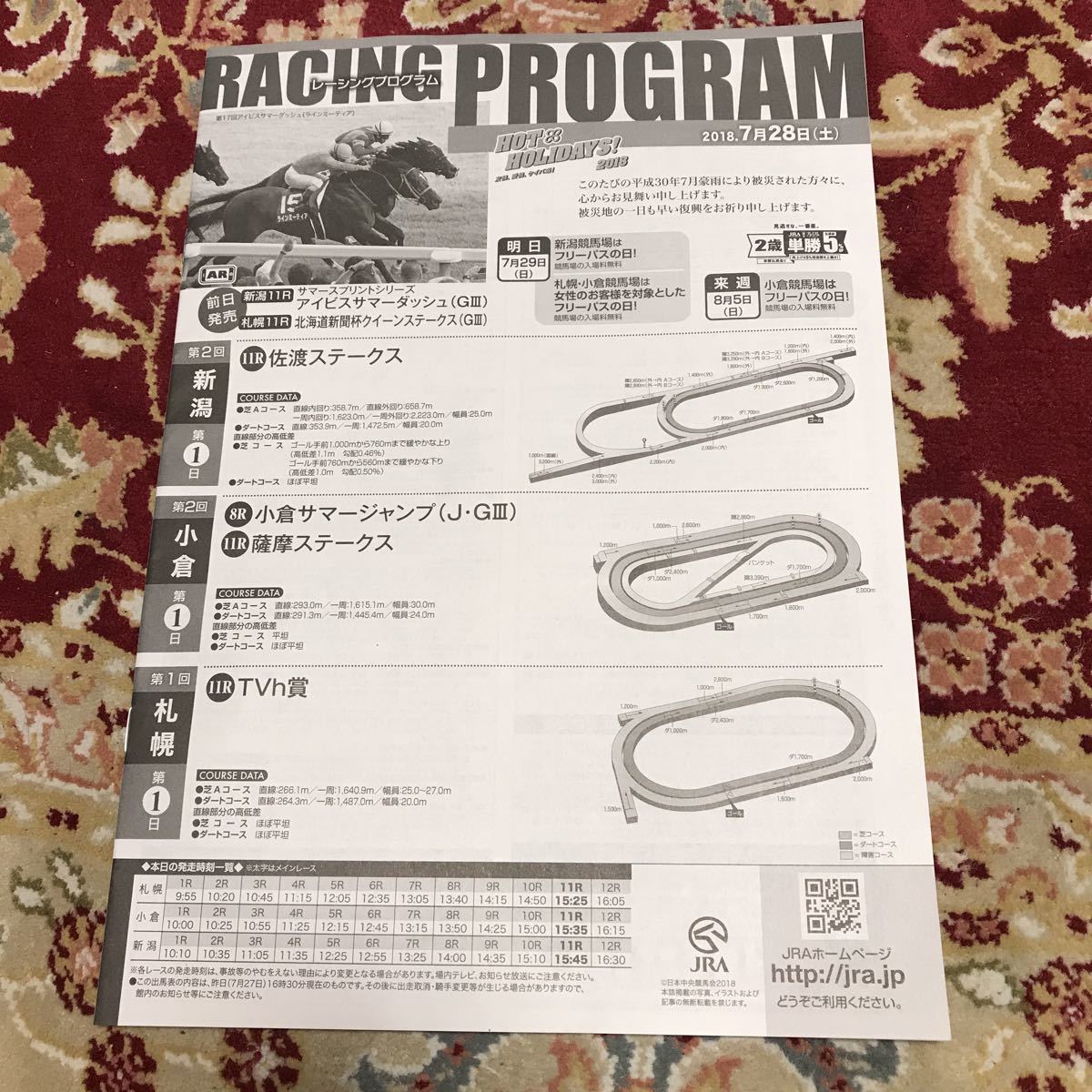 - JRAレーシングプログラム2018.7月28日(土)、佐渡ステークス、小倉サマージャンプ(J・GⅢ)、薩摩ステークス、TVh賞