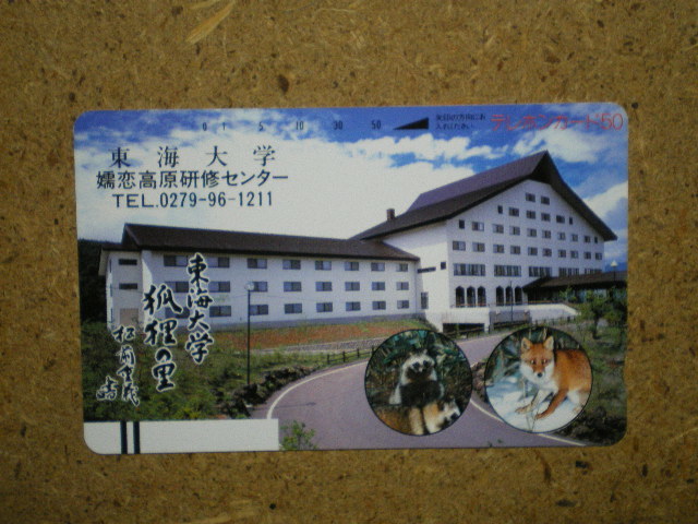 - gakk・110-20516 東海大学 嬬恋高原研修センター 狸 狐 テレカ