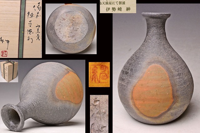 - 伊勢崎紳 ★ 備前窯変牡丹餅徳利 ★ 共箱共布栞 ★ 酒器 ★ 検 人間国宝 伊勢崎淳 伊勢崎満 伊勢崎創 競卓 ★