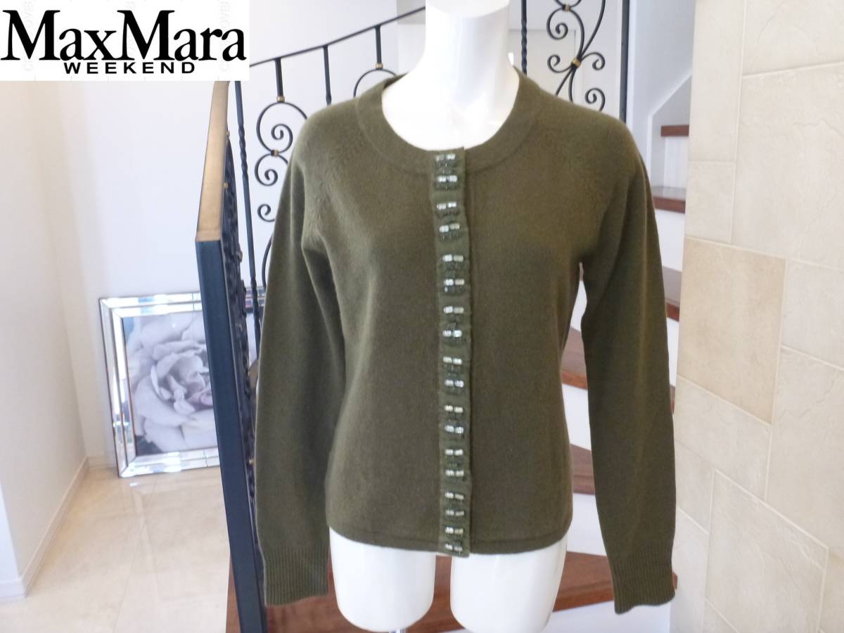 - 美品 Max Mara マックスマーラ ウィークエンド カシミヤ混 カーキ カーディガンM