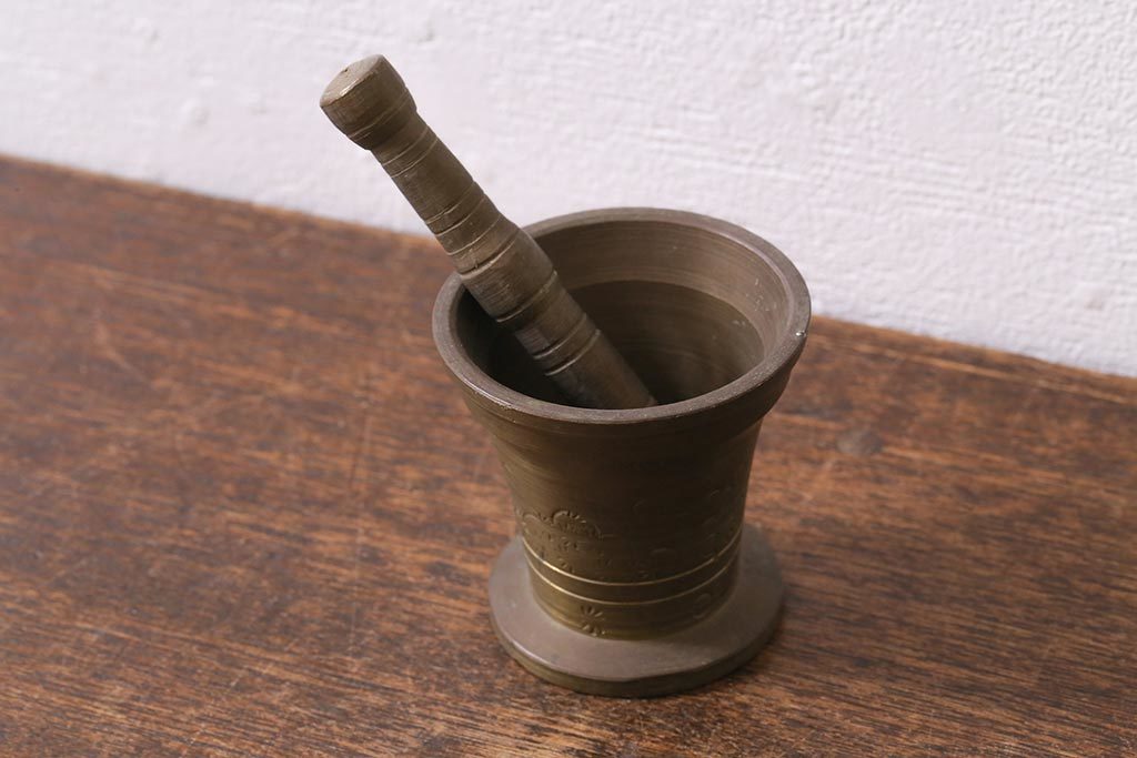 - R-041475 ヴィンテージ雑貨 フランスビンテージ 青銅製のスパイスマッシャー(すり鉢、すりこぎ)(R-041475)