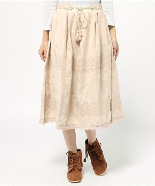 > 277◇スエード刺繍ロングスカート 生成り キナリ axes femme アクシーズ ファム MB291X28 ロング スカート スエード