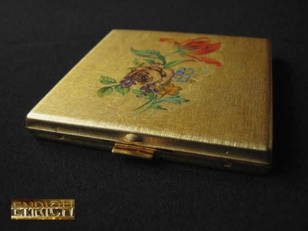 - ドイツ製 EMRICH アンティーク コンパクト ミラー GERMANY レトロ USED 花柄 ビンテージ
