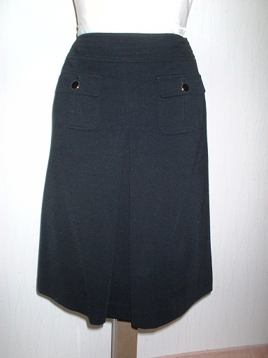 > han① 美品☆即買♪CLEAR IMPRESSION黒中央プリーツスカート ストレッチ 前ポケットボタンウエストブラックステッチ