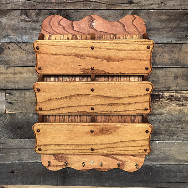 - アメリカ製ビンテージ オーク無垢材 キーフック付 レターホルダー P021