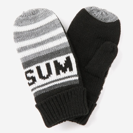 - 新品 コムサイズム デザイン ニット ミトン 手袋 キッズ 黒 F