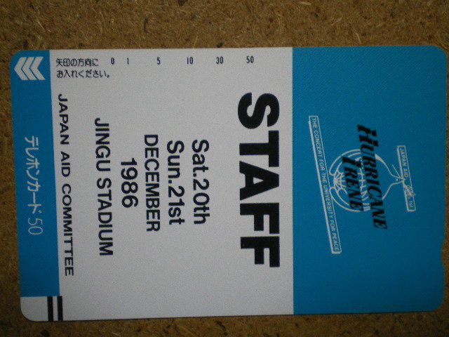 - sono・110-17121 ハリケーン・アイリーン STAFF 1986 神宮スタジアム テレカ