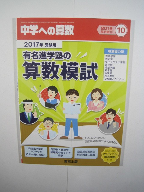 > 中学への算数 有名進学塾の算数模試 2017 解答用紙付属 サピックス小学部 啓明舎 市進学院 希学園 浜学園 早稲田アカデミー サピックス