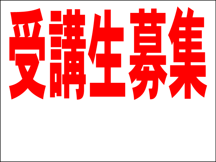 - シンプル看板 「受講生募集 余白付(赤)」Mサイズ <スクール・塾・教室> 屋外可(約H45cmxW60cm)