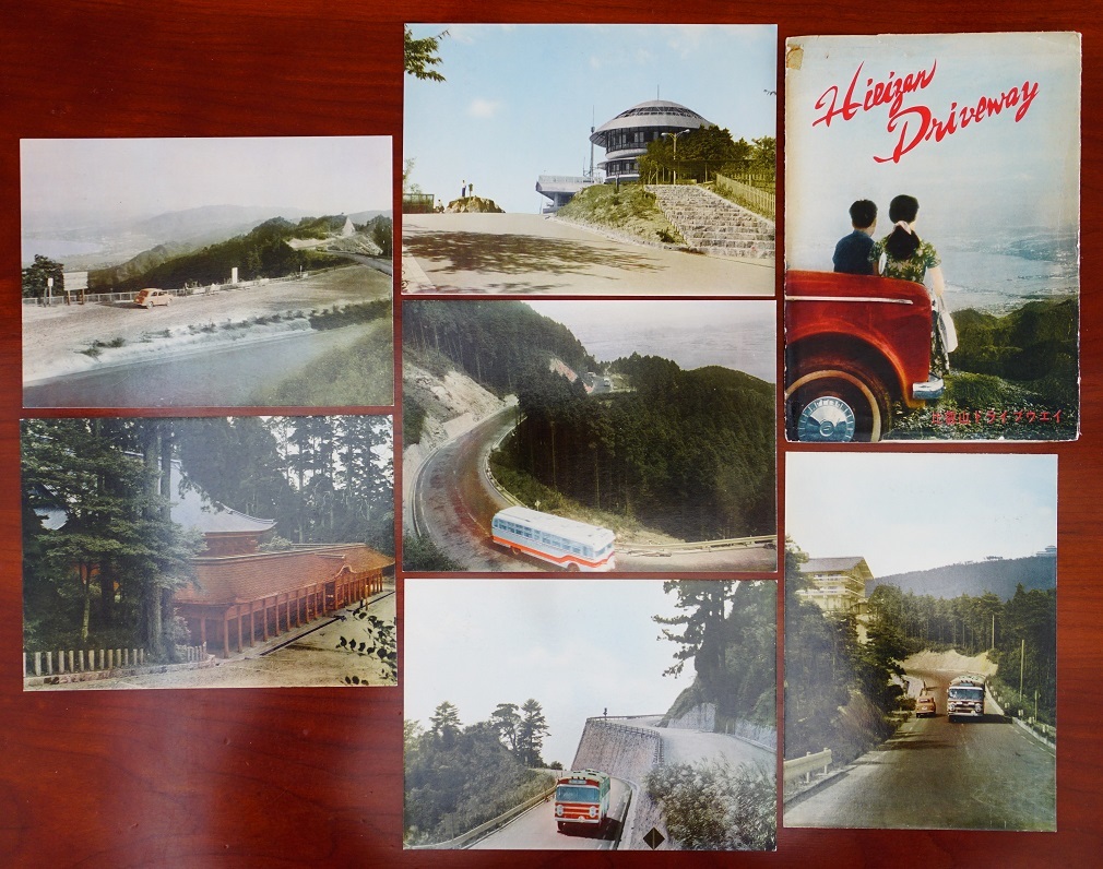 - 絵葉書 カラー6枚 比叡山ドライブウェイ 袋付き :観光バス・回転展望台・根本中堂・比叡山ホテルの一角・ワインディングロード・峠道