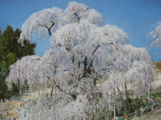 - 黒澤信男、【三春の滝桜(福島)】、希少な額装用画集より、状態良好、新品額装付、インテリア、春、桜