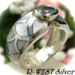 > シルバー925銀のシェル貝殻入り リングtypeB[ブルージルコニア]11号.14号より/シルバージュエリーALL50%OFF