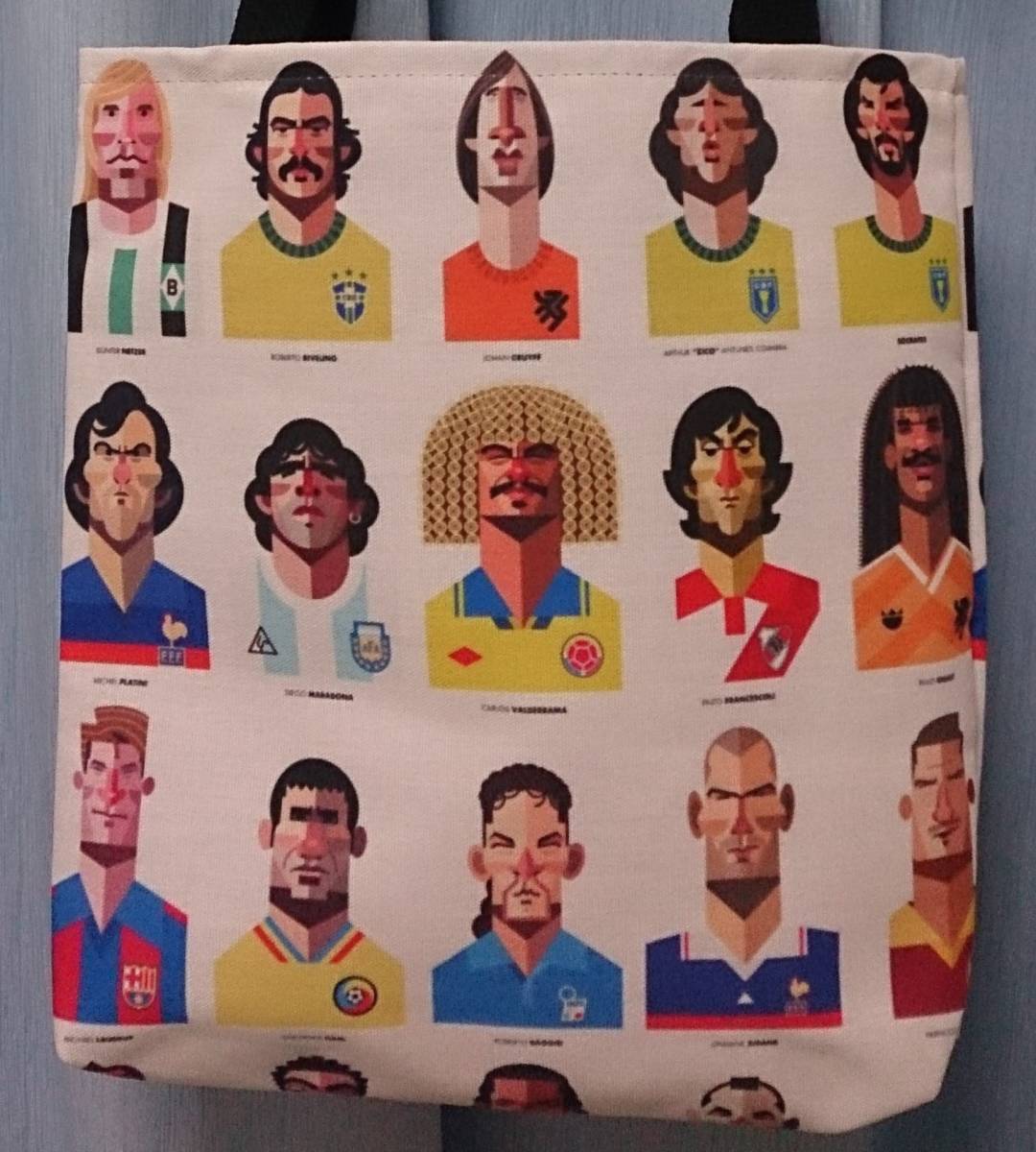 > 直輸入品 フットボール サッカー トートバッグ レジェンド イラスト デフォルメ※未使用品/デッドストック/2012年ごろの製品/レアアイテム