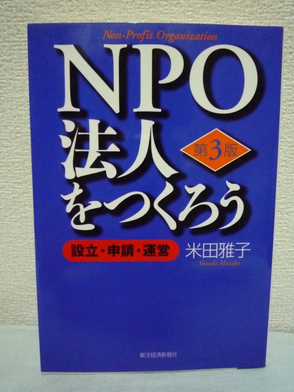 > NPO法人をつくろう 第3版 設立・申請・運営 ★ 米田雅子 ◆ 福祉から国際協力まで様々な分野で活動する民間の非営利団体のノウハウを紹介