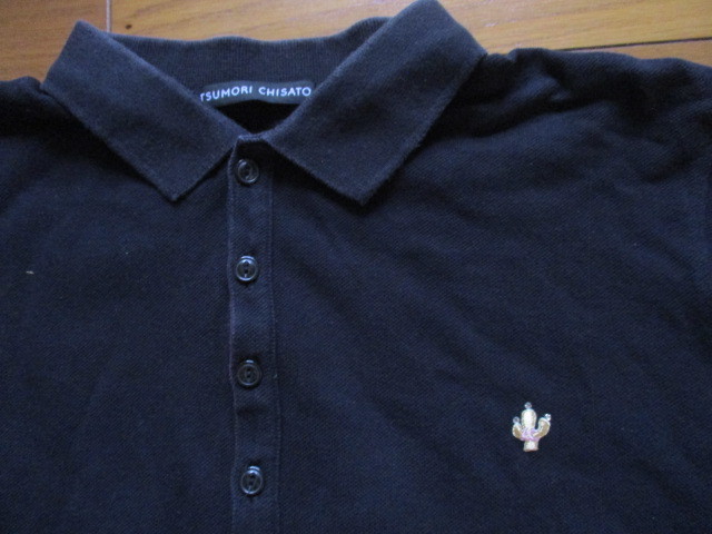 - ツモリチサト サボテン 刺繍 黒 ポロシャツ サイズ不明 半袖 シャツ ワンポイント
