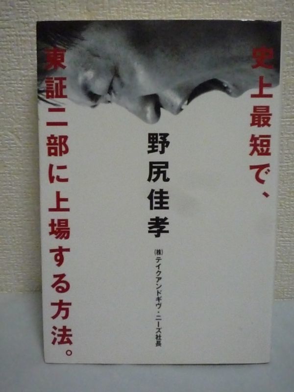 > 史上最短で、東証二部に上場する方法。 ★ 野尻佳孝 ◆ 元不良品の汗と涙と笑いの起業物語 社員への愛と会社への愛 経営のベースは思いやり