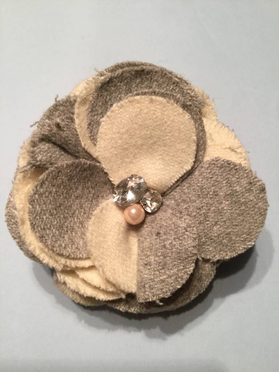 - コサージュ グレー ホワイト 白 ウール生地 送料無料
