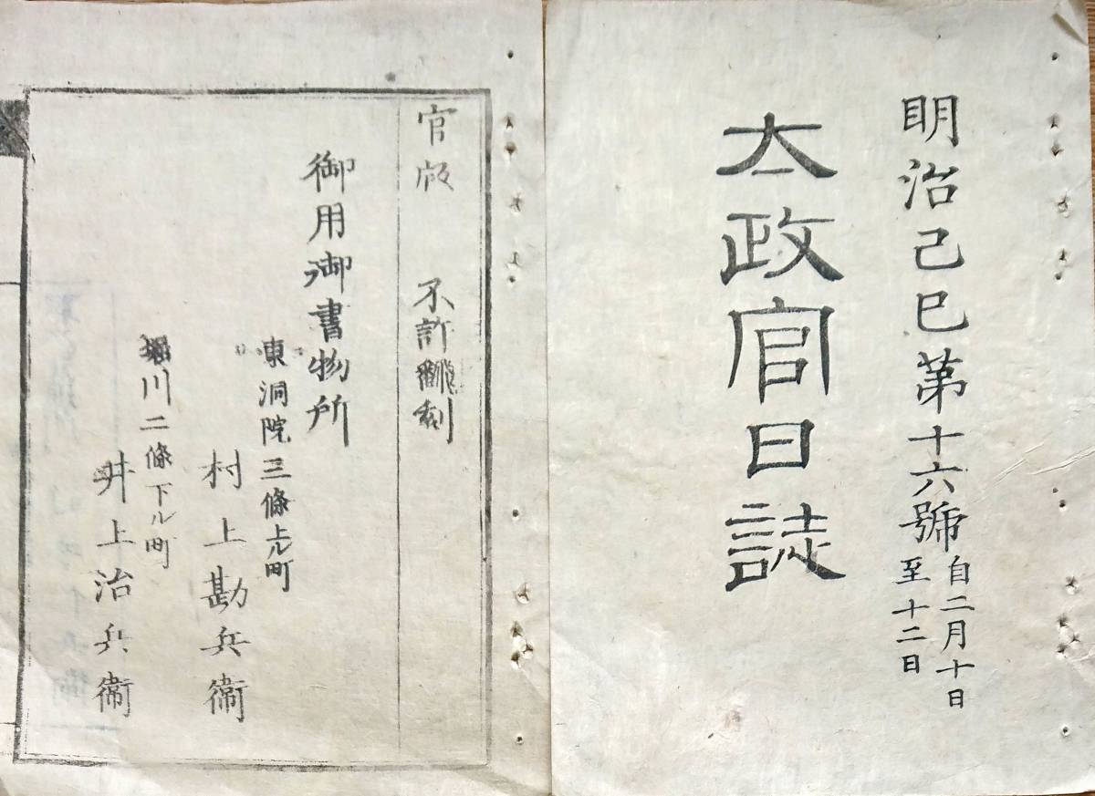 - f190727010〇太政官日誌 明治2年己巳 第16号 加藤能登守版籍奉還上表の事 金札紙御用の事 東京金銀座廃止 和本 古書 古文書