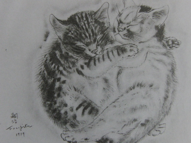 - 藤田嗣治、Leonard Fujita、『ATARAH AND HESIONE』、希少な大判額装用画集より、状態良好、新品額装付、猫、コロタイプ、zero