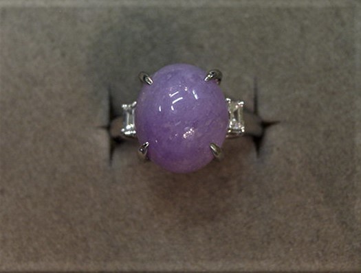 - ♪希少【ラベンダー・ヒスイ】【9号~18号】7.7c・ダイヤ0.16c・Pt900・消費税・送料込み・新品・未使用・本物
