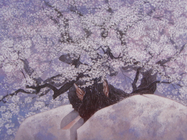 - 三上俊樹、【石割桜】、希少な額装用画集より、美品、新品額装付、インテリア、春、桜、coco