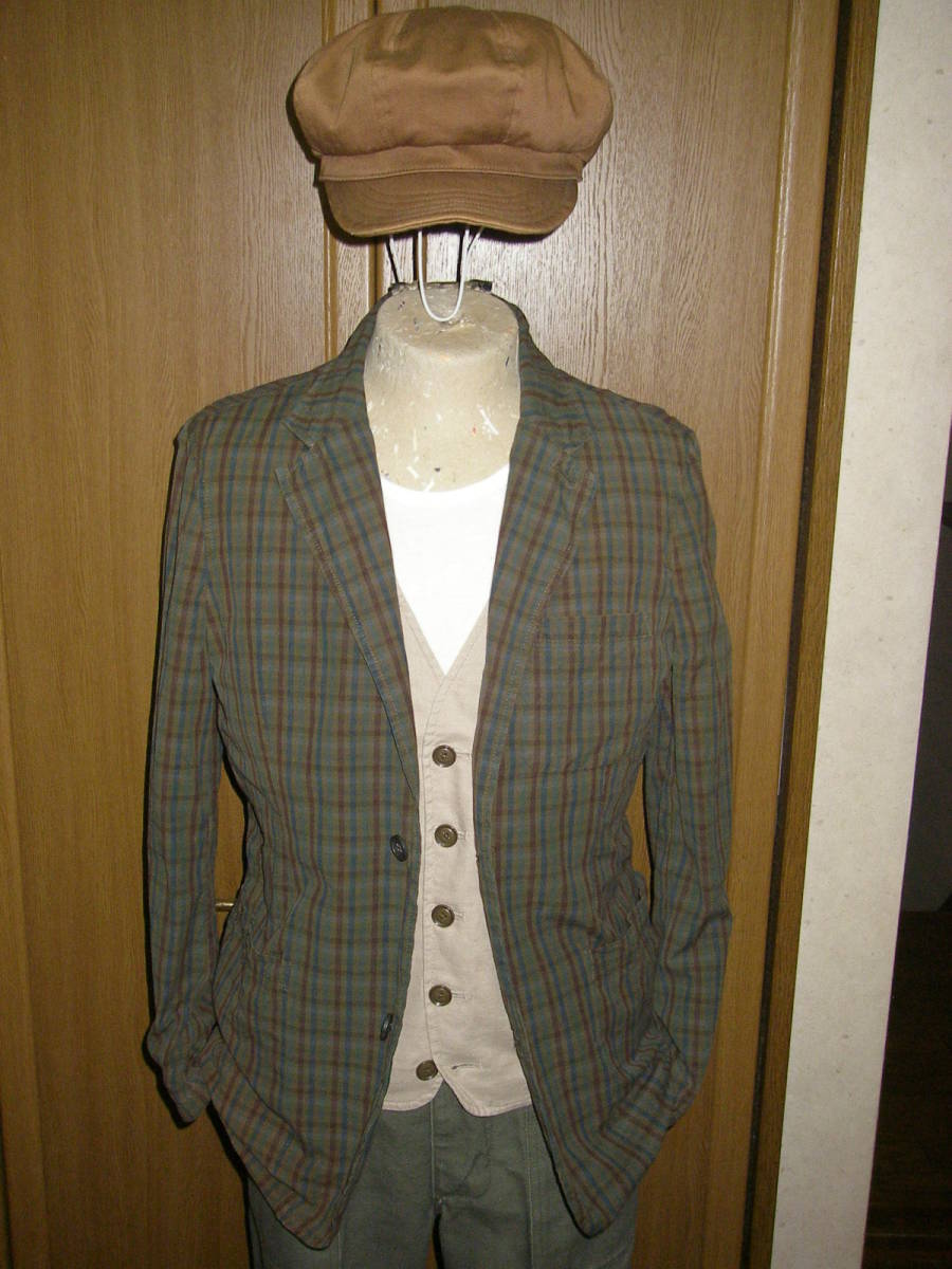 > GAP ギャップ グレー 茶 ブラウン チェック テーラード ジャケット ブレザー コットン S チェックジャケット 綿 テーラードジャケット ( M