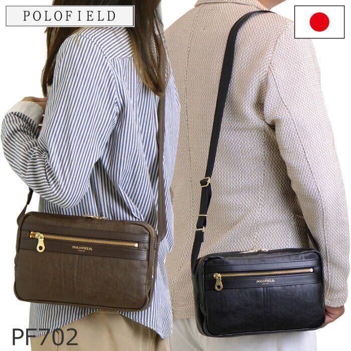 > ☆ ポロ polofield ショルダーバッグ 日本製 軽量 斜めがけ 大人 ブランド おしゃれ 軽い カジュアル ミニ 旅行 合皮 PF 702 チョコ ☆