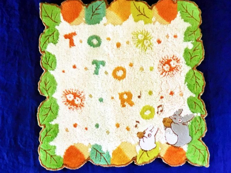 - 【葉っぱの縁取りがおしゃれ♪】となりのトトロ 綿100% 葉っぱ&どんぐりモチーフ タオルハンカチ 約Ф22cm まっくろくろすけ 小トトロ