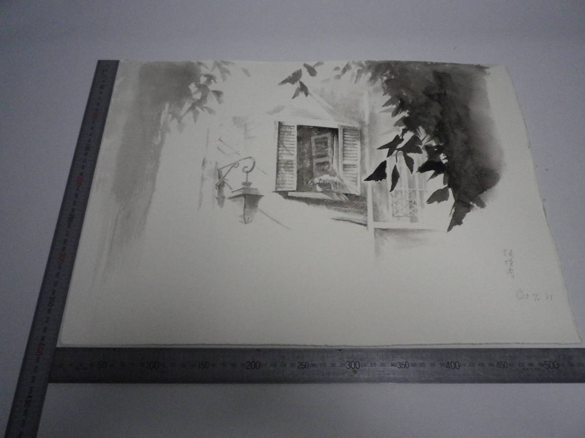> 「イタリアの窓」水墨画【坂垣内 将泰】作者直筆原画「真作」P10号ハーネミューレ紙(経年保管品)【送料無料】00700070
