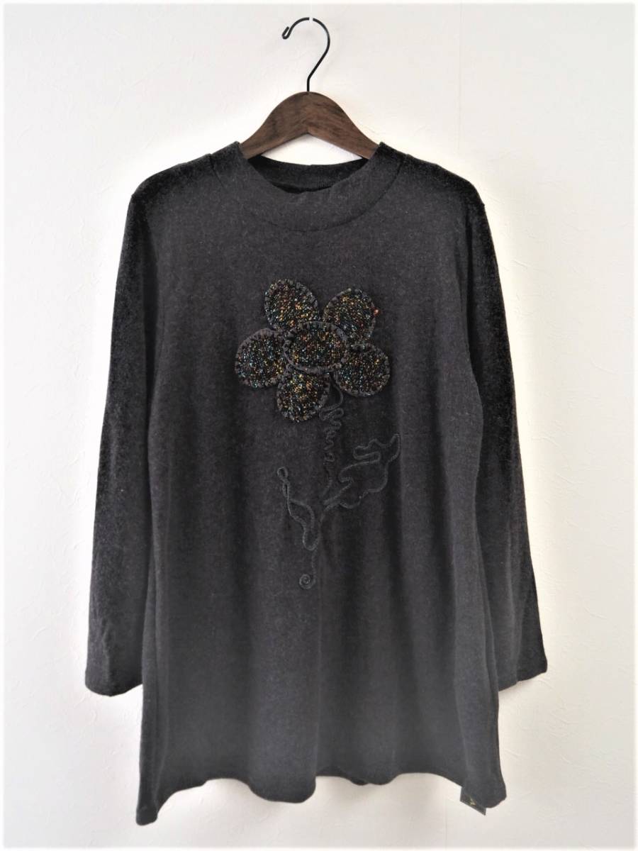 - 新品 タグ付き フラワーアップリケ 長袖カットソー プルオーバー ミセス M~Lサイズ 秋 冬