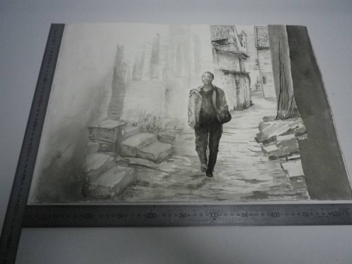 - 「中国の裏街」水墨画【坂垣内 将泰】作者直筆原画「真作」P10号ハーネミューレ紙(経年保管品)【送料無料】00700123