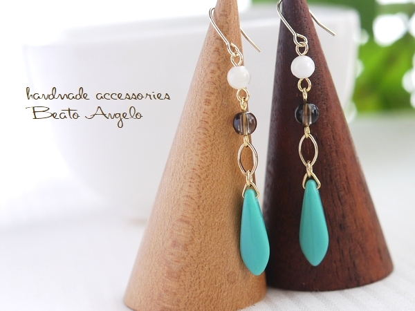 > ◇◆+angelo+チェコダガーとスモーキークォーツのピアス(p-165)ターコイズ G 天然石 ブラウン ホワイト