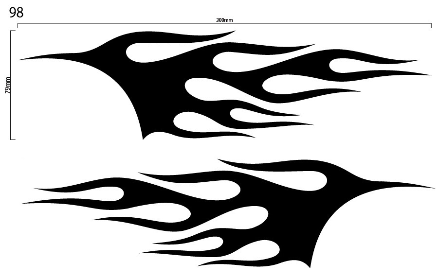 - 自作カッティングステッカー ファイヤーパターン 左右セット 98 79×300mm ネコポス対応可能 ステッカー 商品同梱可 新品[S-144]