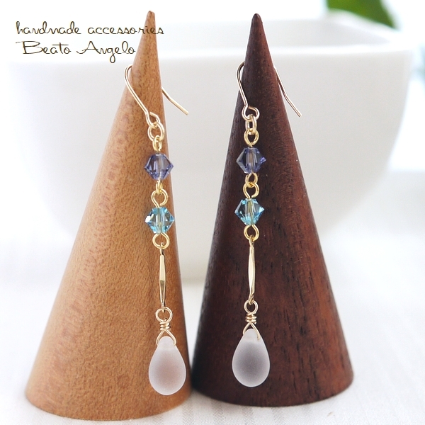 - ◇◇+angelo+チェコドロップとスワロフスキーのピアス(p-447)クリスタルマット G d004 ホワイト 春 夏 チタン 樹脂 イヤリング