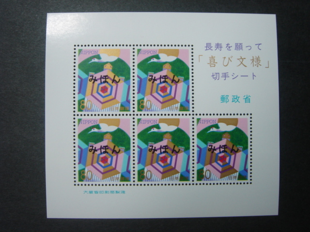 - 【みほん字入り】長寿を願って「喜び文様」切手シート