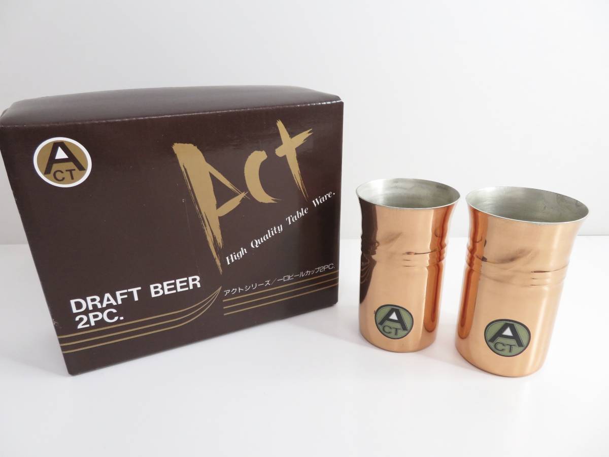 - ▲栗林商事 アクトシリーズ 一口ビールカップ 銅タンブラー 2客セット 箱あり 未使用品 管理2004 S-3