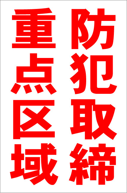 - シンプル縦型看板「防犯取締重点区域(赤)」【防犯・防災】屋外可